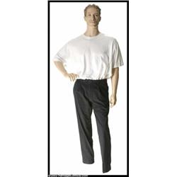 Sylvester Stallone - Screen-Worn Movie Costume from "Driven". An extremely rare outfit consisting of T-shirt and custom-tailored men's pants worn by Sylvester Stallone in his last film, "Driven", in which he portrayed a race car driver. Stallone material, rarely offered for sale, is avidly sought after by collectors. This particular costume includes a letter of authenticity detailing the history of the wardrobe and its acquisition from Universal Studios. Cataloged and guaranteed by Startifacts. Important notice: Heritage usually auctions material at the rate of 200-250 lots per hour. On some occasions eBay Live bid software or the Internet may not be able to keep up with the pace of the auction. We recommend placing a realistic absentee bid now as insurance to avoid disappointment. Occasionally the auctioneer may eliminate or reject an eBay Live bid, and the auctioneer may also reopen a lot after the close of the eBay live bidding (usually because we missed an audience bid), and may reject your bid even if it shows you as the winning bidder. By bidding via eBay Live, you agree that Heritage may award the lot to another bidder at its sole discretion under the circumstances described above or any other reasonable circumstances. Also please note that all Heritage lots purchased through eBay Live carry a 20% Buyer's Premium. Please make sure you read the Terms and Conditions before you bid.