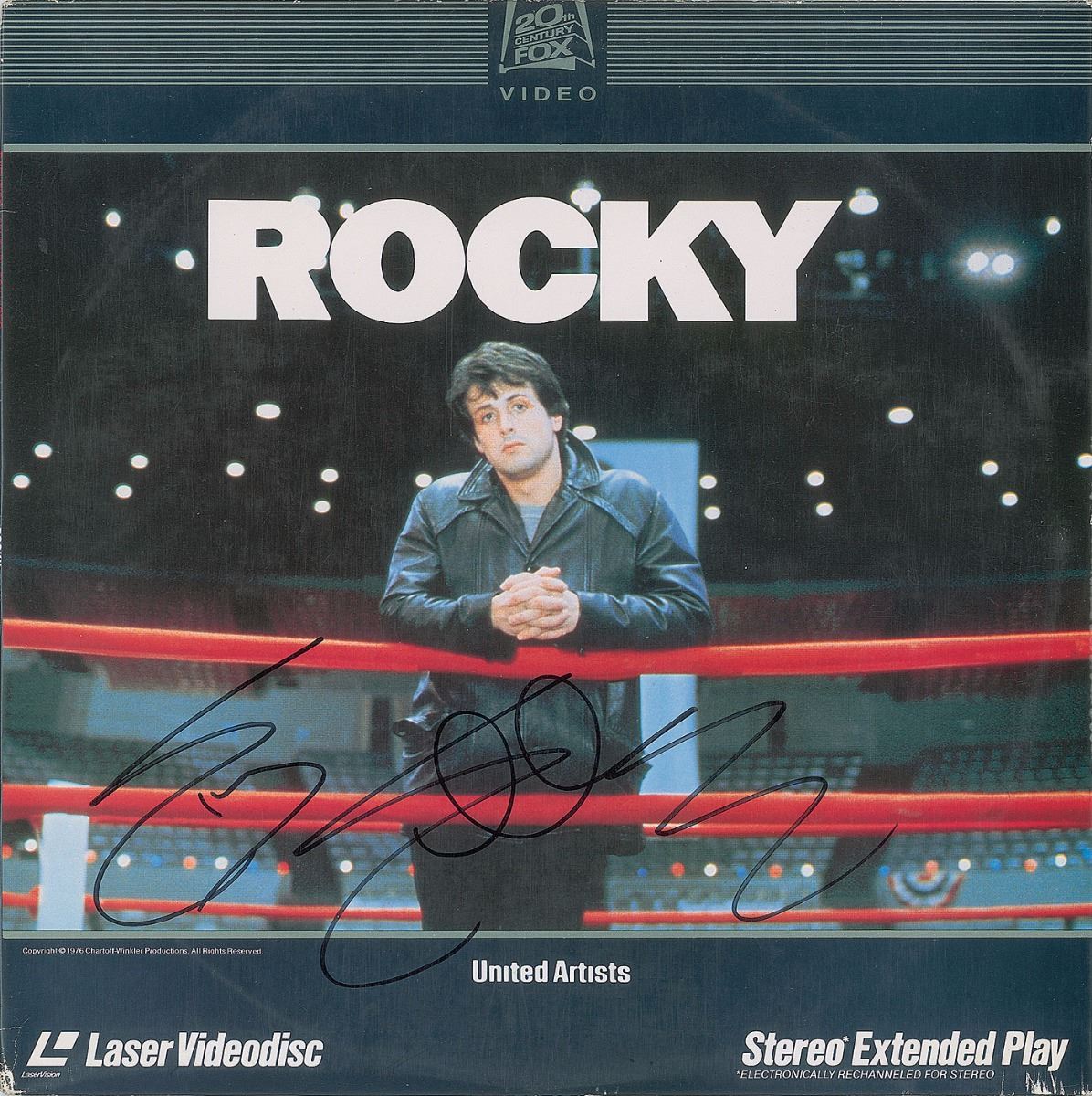 Rocky laser disc signed on the front cover in black felt tip by Sylvester Stallone. In fine condition, with some light scuffing. Disc is included. Accompanied by a certificate of authenticity from PSA/DNA.