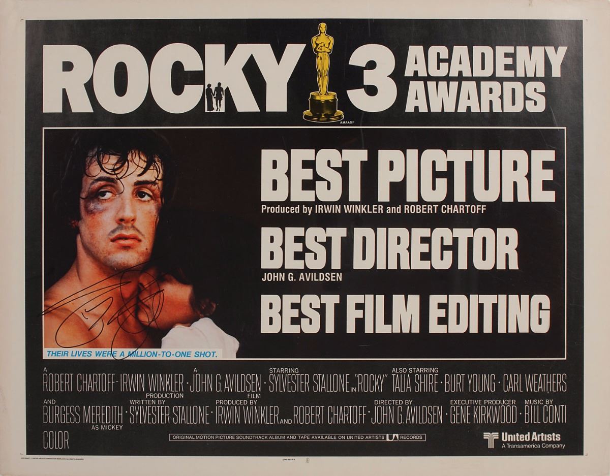 Color 28 x 22 lithograph for the Oscar-winning 1976 film Rocky, signed in black felt tip by Stallone. Rolled and in fine condition. Accompanied by a full letter of authenticity from PSA/DNA.