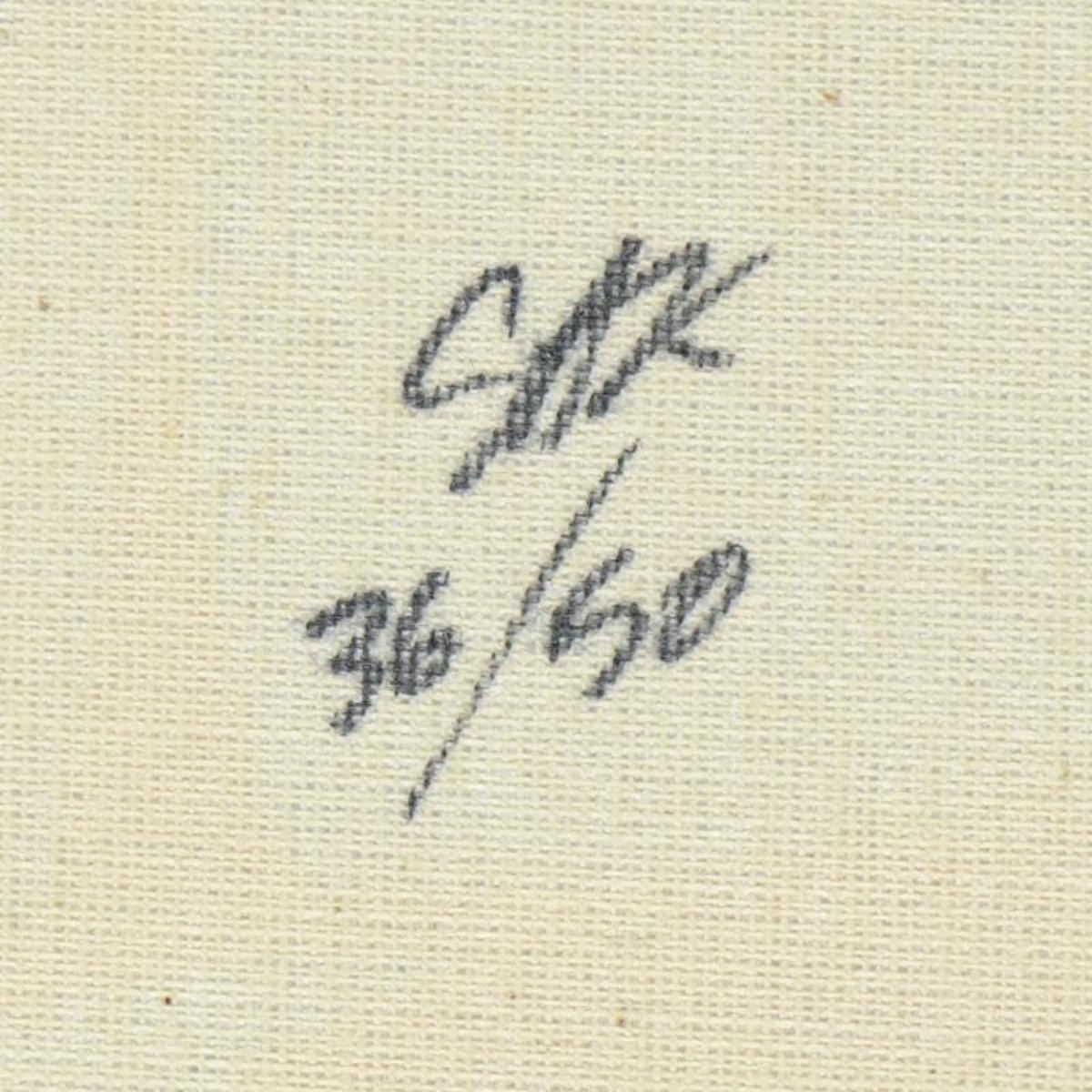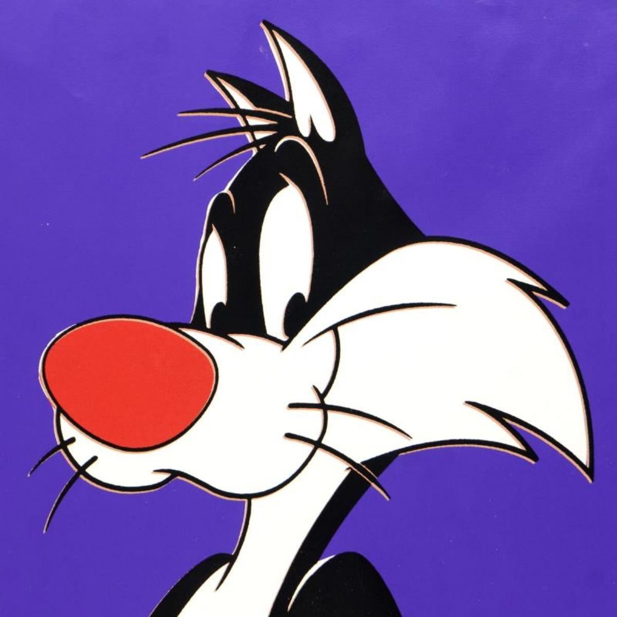 "Sylvester" is a limited edition hand pulled silkscreen on canvas by Andy Warhol protege Steve Kaufman (1960-2010). This piece is numbered 36/50 and hand signed inverso. Includes Certificate of Authenticity. Measures approx. 30" x 24" (image).