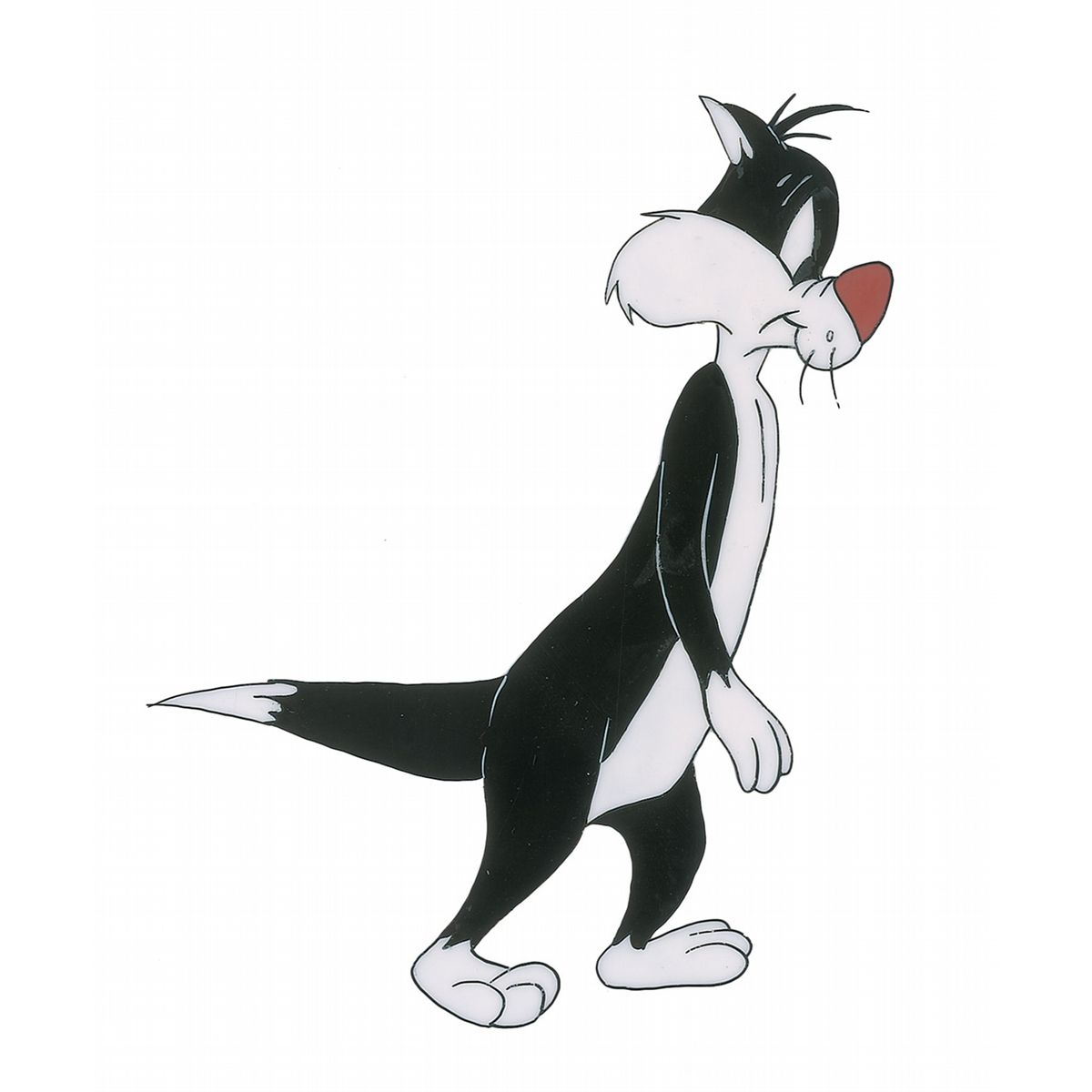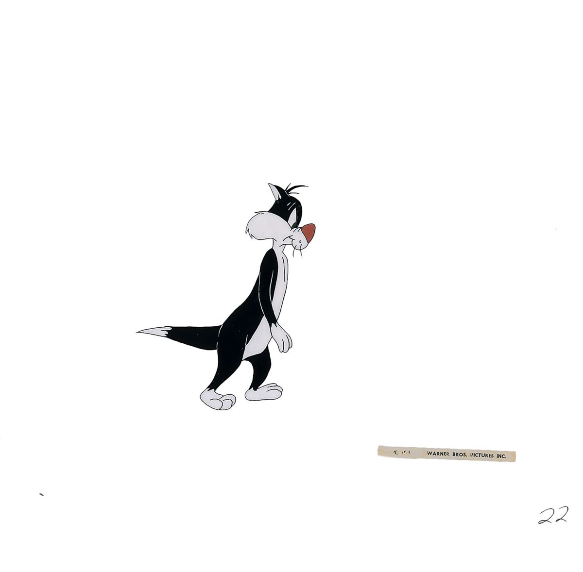 (Warner Brothers Studios, Circa 1950s) Original production cel featuring Sylvester from a circa 1950s production. Image measures 4 x 5, with overall dimensions of 12.25 x 10.25. A small Warner Bros. label is affixed to the lower right. In fine condition.