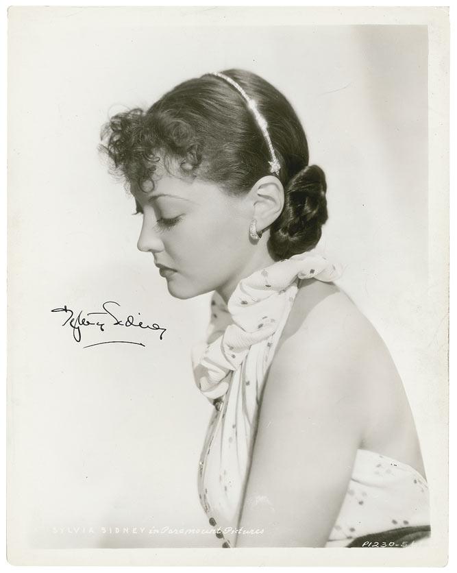 Vintage glossy 8 x 10 Paramount publicity photo, signed in-person in fountain pen. Reverse of photo bears collector’s stamp date of January 6, 1936, the date the signature was acquired. Scattered creases and surface marks, otherwise fine condition. Saul Goodman Collection.