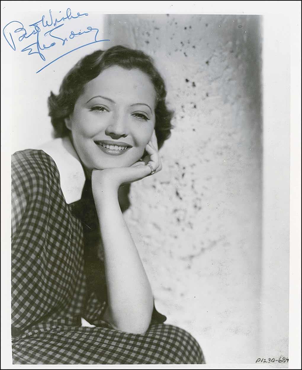 Glossy 8 x 10 photo of Sidney resting her head in her hand, signed in blue felt tip. In fine condition, with some scattered light creasing.
