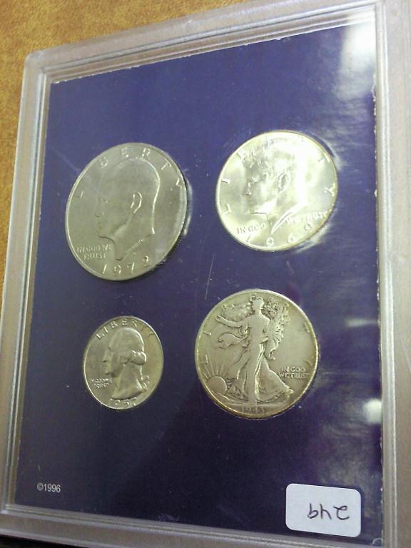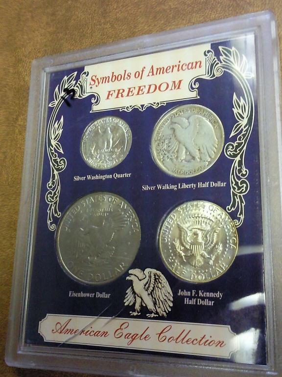 Contains Ike Dollar, 40% JFK, Walking Liberty Half And Silver Washington Quarter