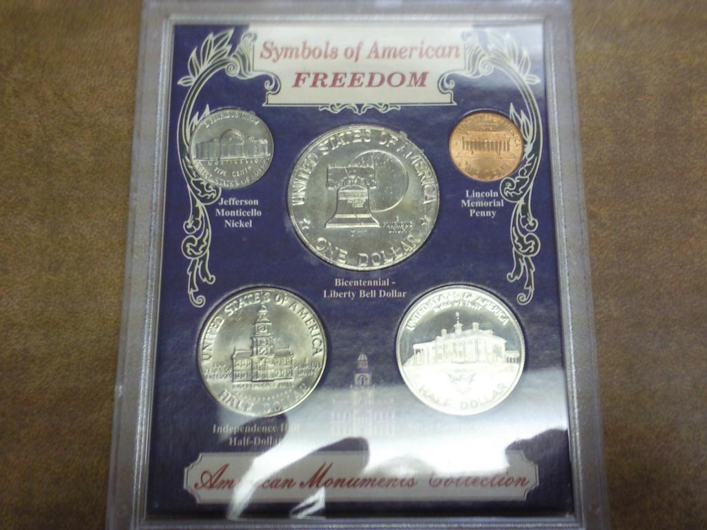 Includes Silver Washington Half Dollar, 1976 Ike, 1976 Half, Jefferson Nickel And Lincoln Cent