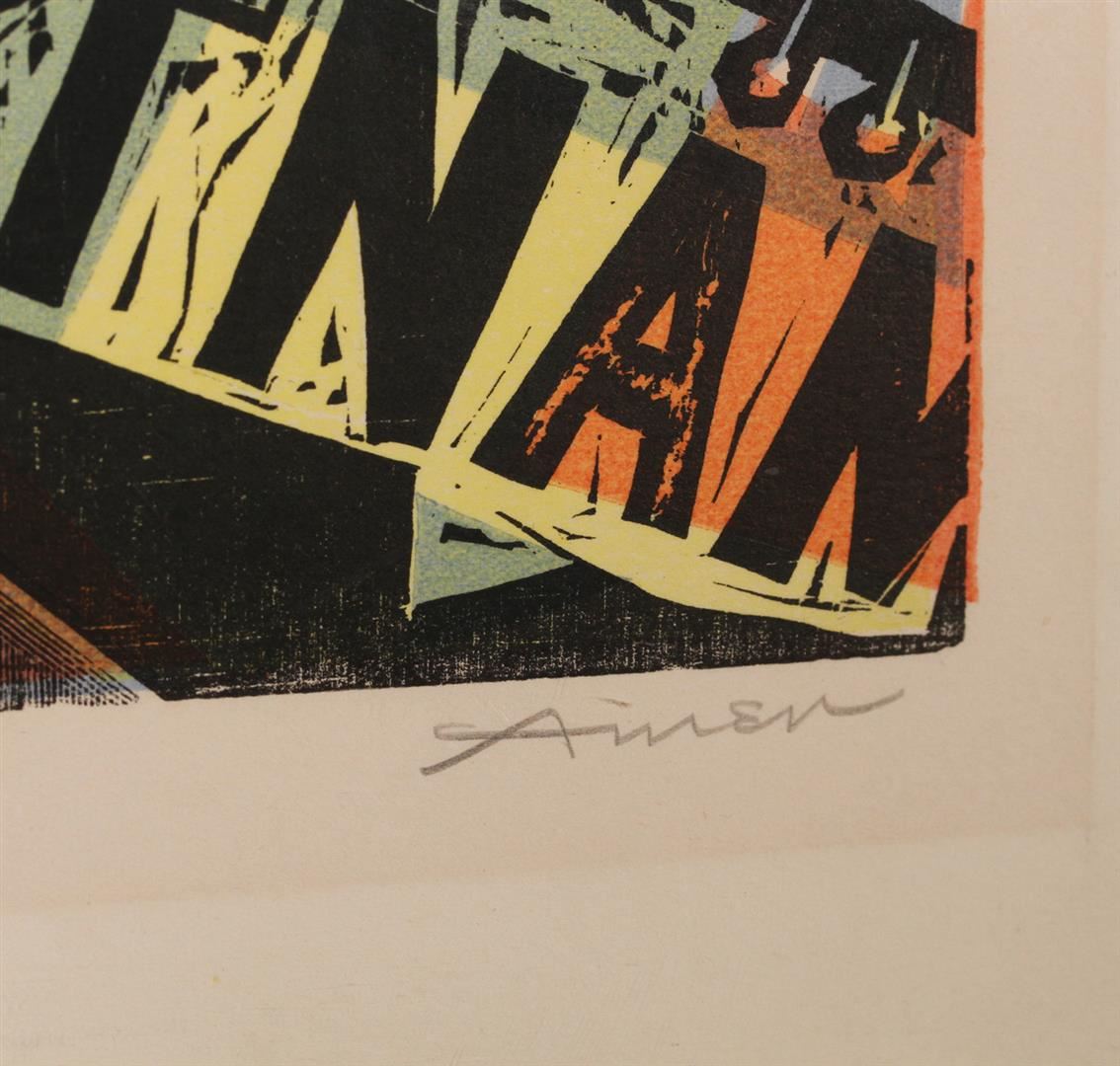 A rare hand-pulled lithograph on paper , by the Peace and Love Movement's "Amen". This piece measures 20.75x16.25" with an image size 17x12". it is pencil signed and numbered 171/200. Using a non-de-plume to create this and other iconic images of the Vietnam War Anti-War protests in 1960's San Francisco, this artist can lay claim to popularizing numerous symbols (ergo: the title of this piece ) that are recognizable through the Nation for the capturing the Spirit of a Generation, the Spirit of woodstock , and of the Hippies and the Peace Movement.