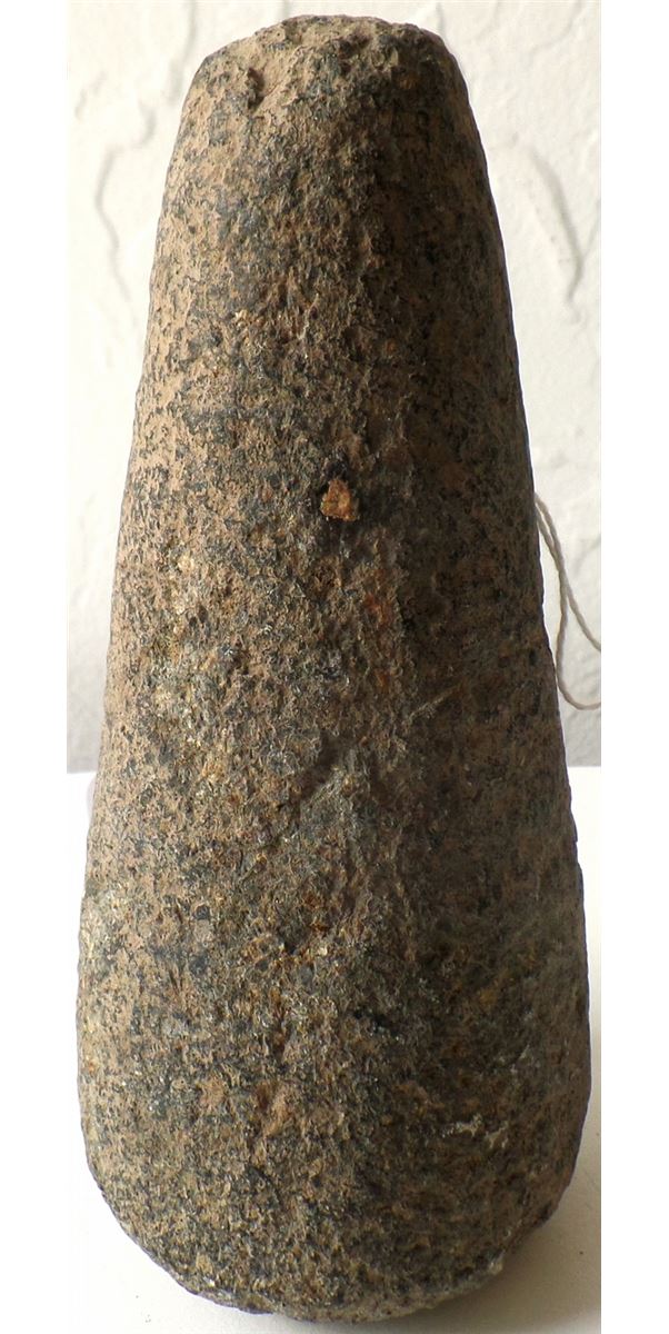 Symmetrical Stone Pestle approximately 1000 years old made from Basalt. This item has minor chips, but has a very nice shape. The Stone pestle is from the Columbia River area. It measures 6 x 2 1/2 inches Shipping: $20