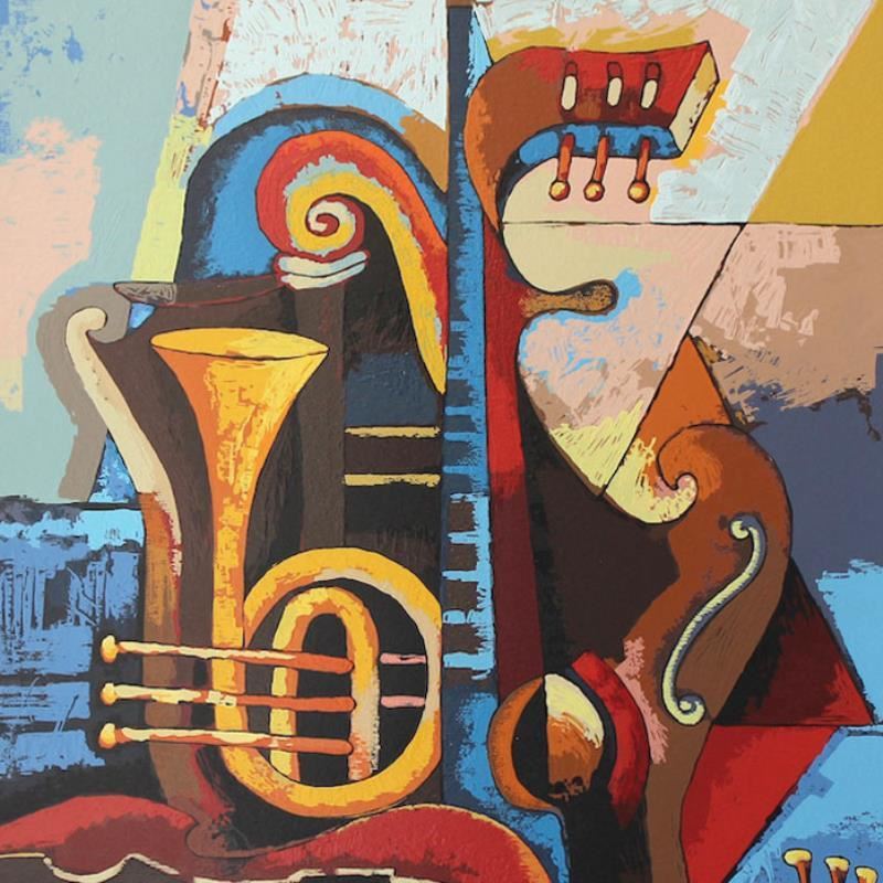 "Symphony I" is a limited edition Serigraph on Paper by Igor Kovalev. The piece is numbered, hand siged by the artist, and come with a letter of authenticity. Measures approximately 19" x 17".