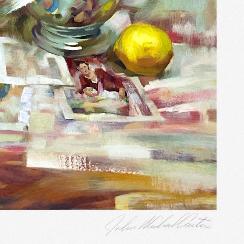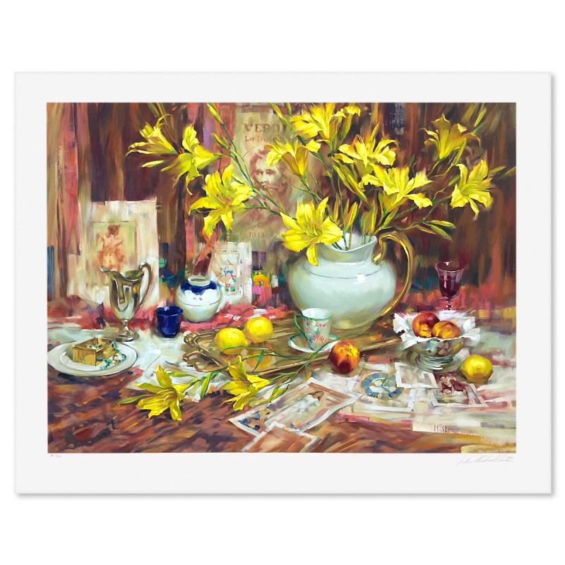 "Symphony with Lilies" is a limited edition printer's proof on paper by John Michael Carter, numbered 1/20 and hand signed by the artist. Includes Letter of Authenticity. Measures approx. 30.5" x 38.5" (border), 25" x 33.5" (image). There are minor crease