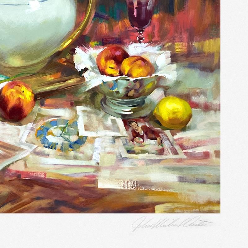"Symphony with Lilies" is a limited edition printers proof serigraph on paper by John Michael Carter numbered and hand signed by the artist. Includes Letter of Authenticity. Measures approx. 30.5" x 38.5" (border) 25" x 33.5" (image).