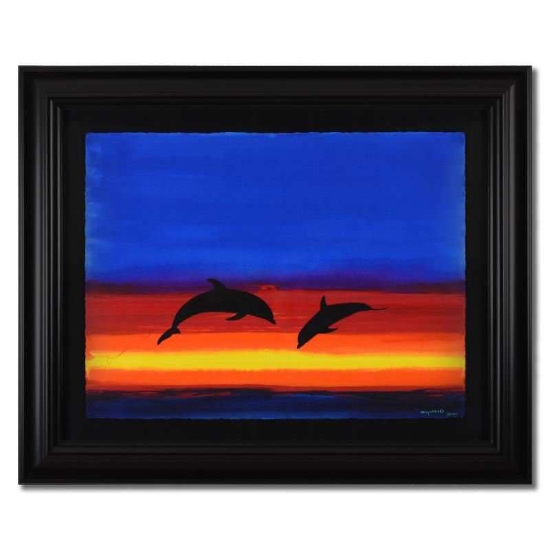 "Synchronicity At Sea" is an original watercolor painting on deckle edge paper by Wyland, hand signed by the artist. This piece comes custom framed. Includes Letter of Authenticity. Measures approx. 41" x 33" (frame), 30" x 22.5" (image).