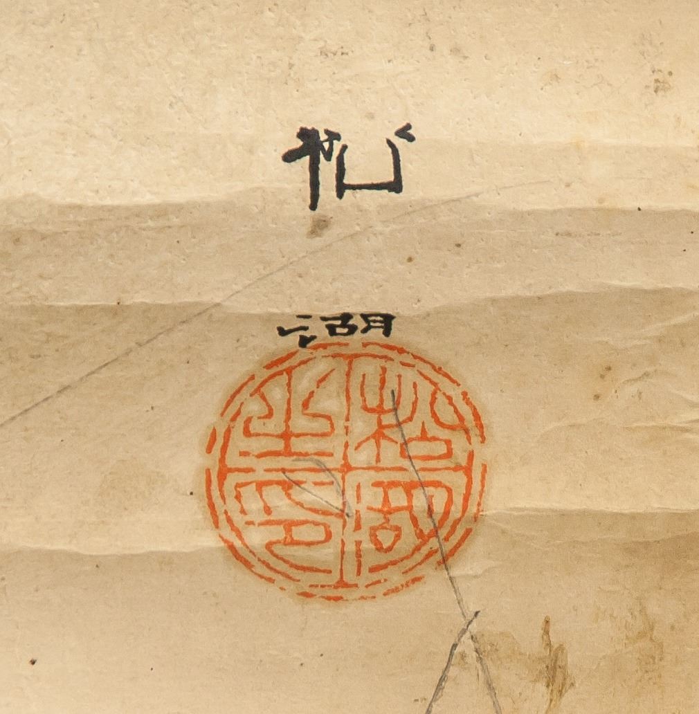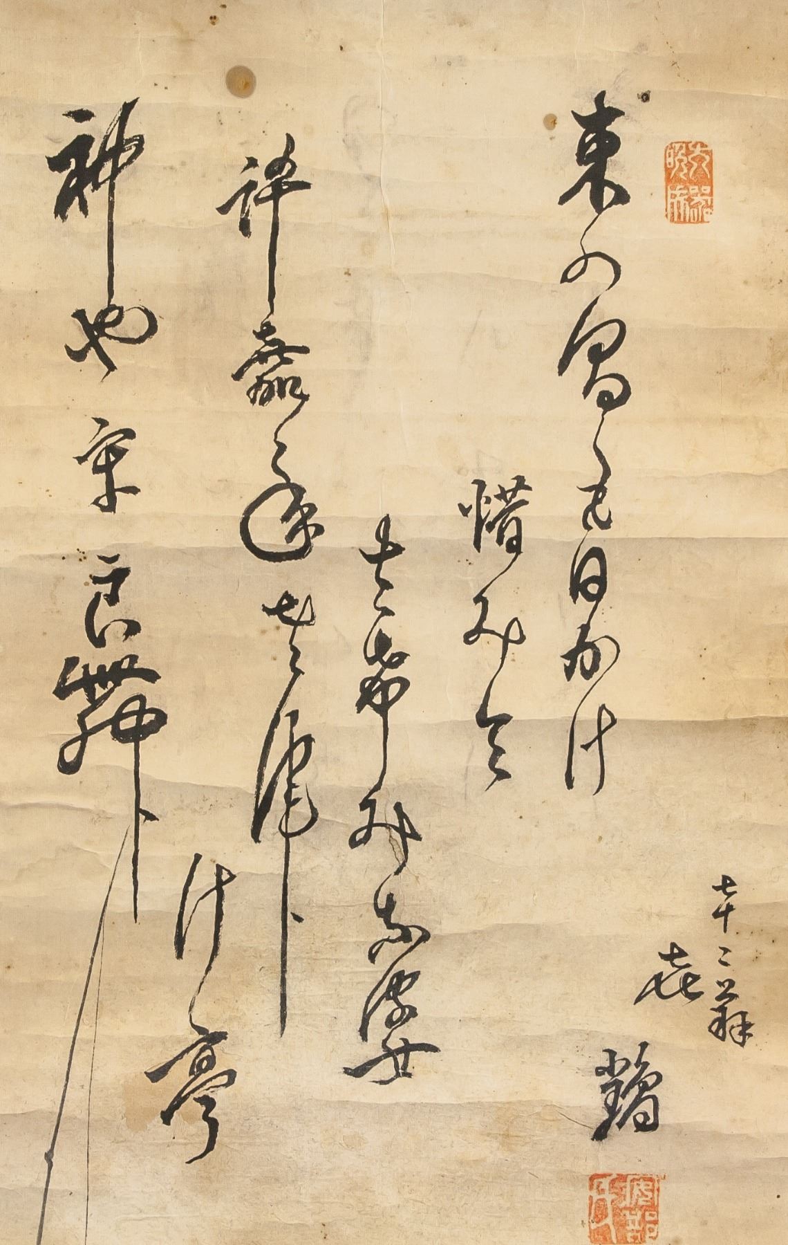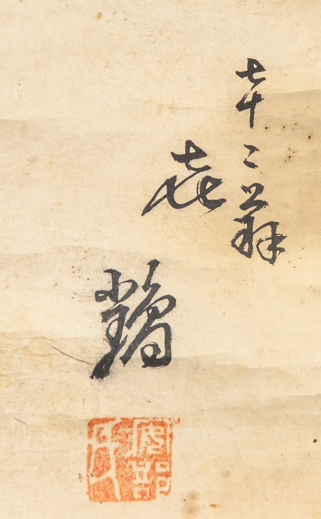 Two fishing men, ink and watercolor on paper, hanging scroll, signed Syouko, inscribed with 3 artist seals, 62 x 77 cm
