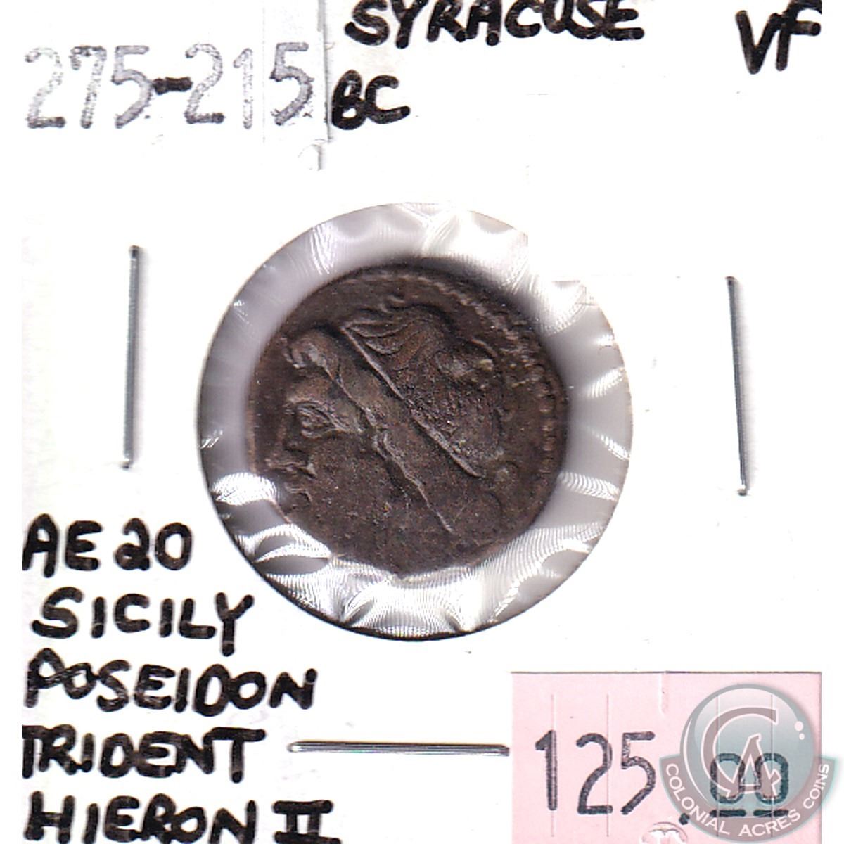 Syracuse 275-215BC AE20 Sicily Poseidon Trident Hieron II Very Fine