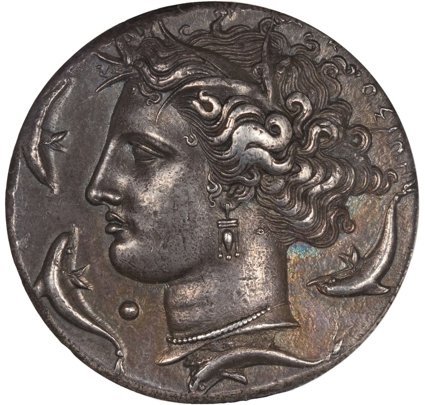 Struck ca. 400-390 BC. 33mm. 43.30 gm. NG Copenhagen 694 and Dewing 923 (both from same obverse die). Rarely centred.