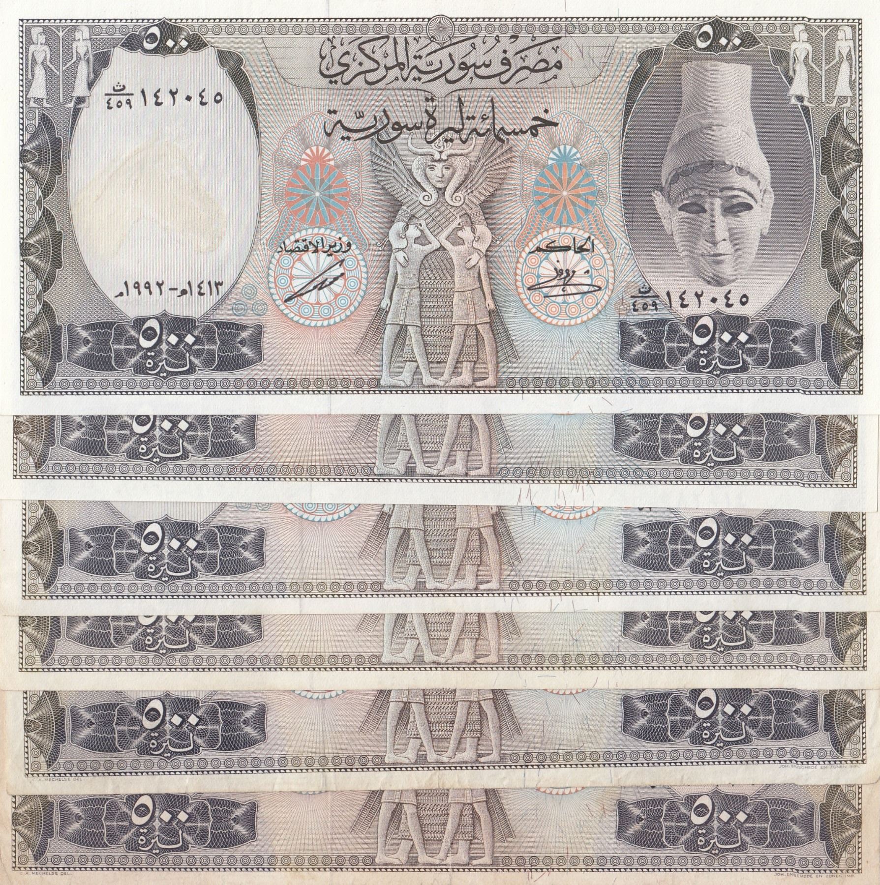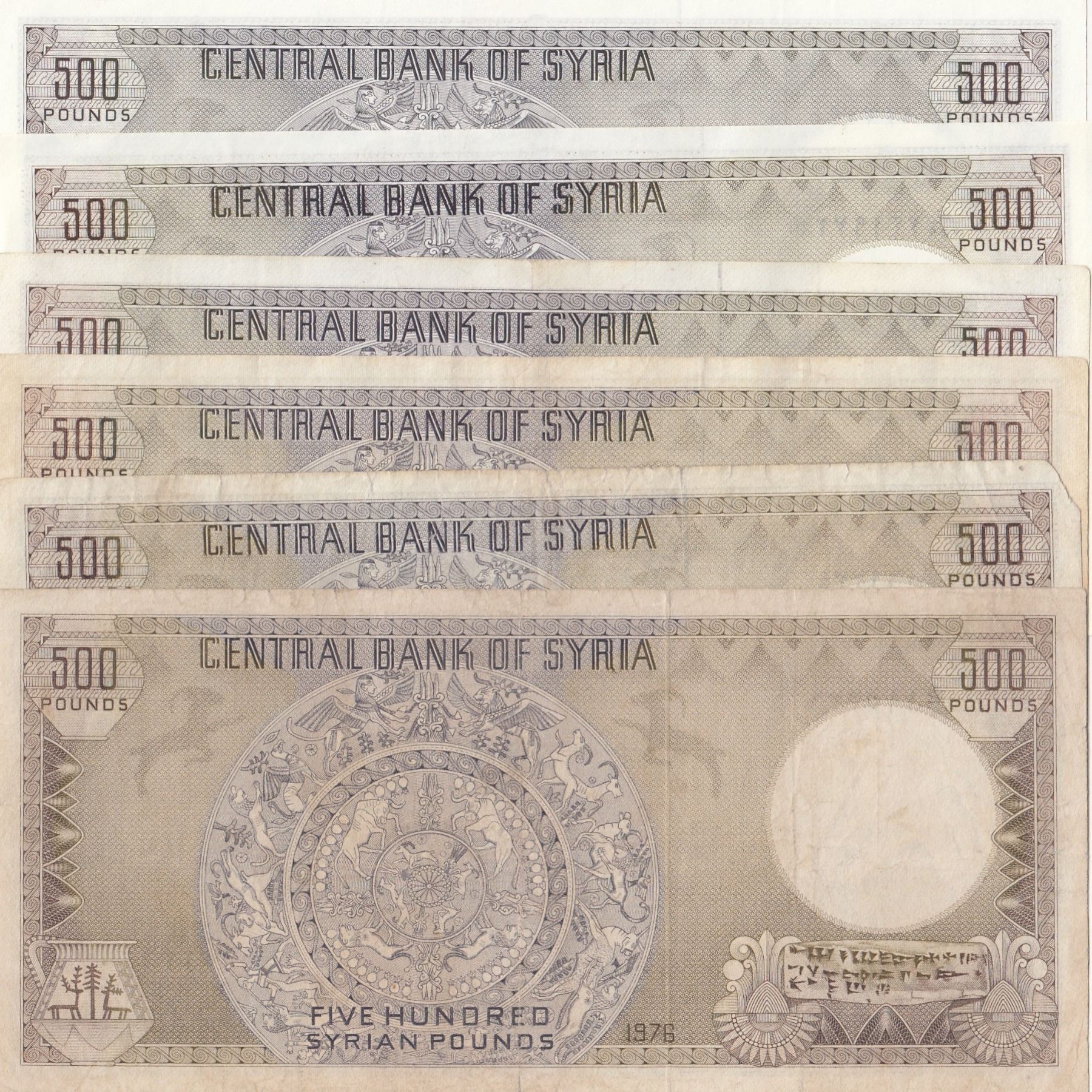Syria, 500 Pounds, 1976/1992, VF /AUNC, p105a-b-c-d-e-fbr/Lot of all banknotes of Syria "500 Dinars"