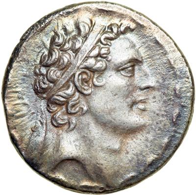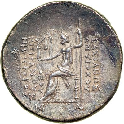 In 170 BC, Antiochos plundered the Treasury of the Temple of Jerusalem and carried away golden holy artifacts. Two years later, he issued a decree forbidding all Jewish religious practices under penalty of death. The Jews revolted under the leadership of the Maccabees, and later celebrated their victory with the holiday of Hannukah. Choice Very Fine.