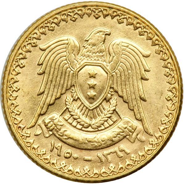 Syria. Pound, AH1369-1950. Fr-2; KM-86. Weight 0.1956 ounce. Imperial eagle. Reverse: Inscription. Brilliant Uncirculated.
