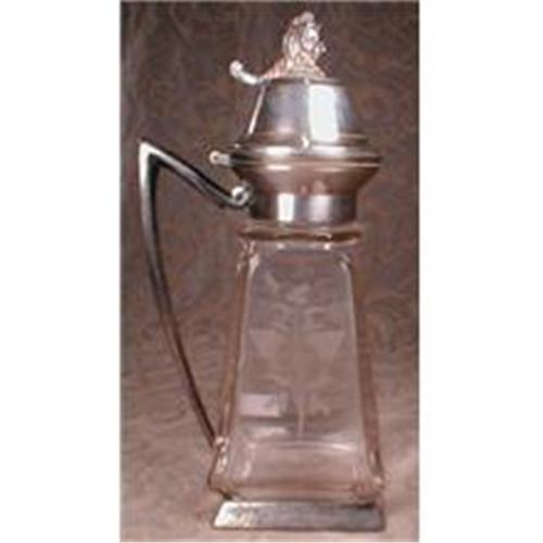 <tr><td>Title:Syrup Pitcher AMAZON Head ANTIQUE Silver/Glass</td></tr>