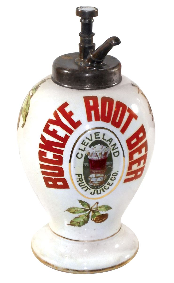 Syrup dispenser, Buckeye Root Beer w/Beech Nuts, from the Cleveland Fruit Juice Co., ceramic urn-sha