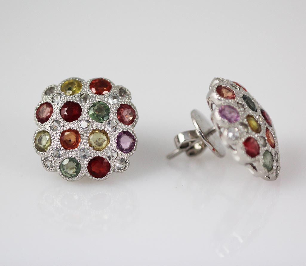 Sytlish Multi Gemstones Round Silver Earring w/ CZ ston **|**|** 6.90g Multi Gemstones Round w/ CZ sotnes Silver Pendant ; MSRP: $300