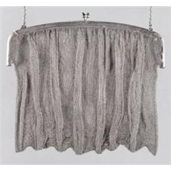 Pest, 1920 körül, ezüst, "KI" mesterjegy, láncszövet merevíto pánttal és karlánccal, zafíros nyitógombbal, bélés hiányzik, 217 g