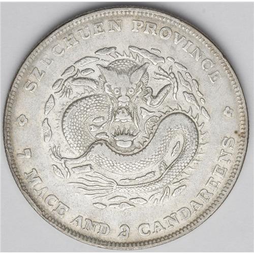 <B>Szechuan. Dollar ND (1901-08),</B></I> KM-283.3, XF with traces of remaining luster. This is the error type with 7 MACE AND 3 CANDAREENS in the obverse legend.