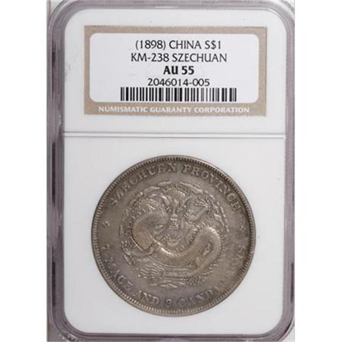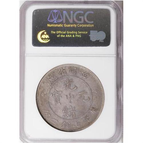 <B>Szechuan Dollar ND (1901-08), </B></I> KM-238, AU55 NGC. Well struck and nicely toned with just a touch of rubbing on the highpoints and no significant flaws. Scarce in higher grades.<BR><BR><b>Shipping:</b> Coins & Currency (<a target="_blank" href="http://www.heritageauctions.com/common/shipping.php">view shipping information</a>