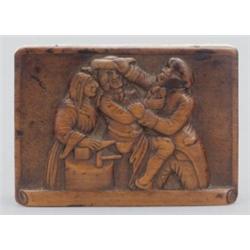 flamand, 17. sz., faragott diófa, foghúzás ábrázolással, 3*9*6,5 cm