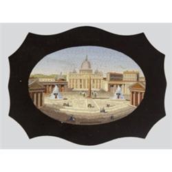 Itália, 19. sz. második fele, mozaik berakással, onix keretben, 9,5*12,5 cm