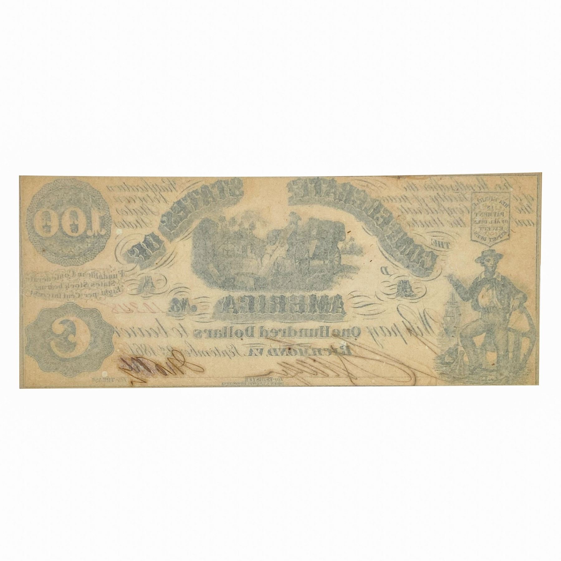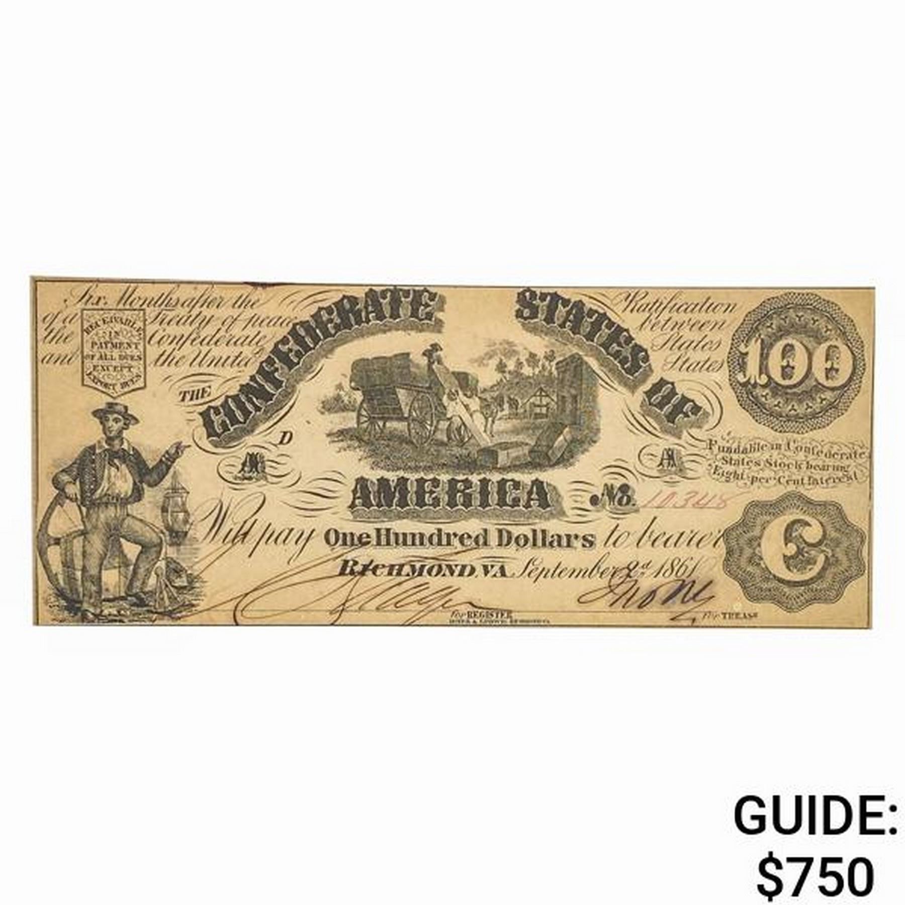 T-13 1861 $100 CSA CONFEDERATE NOTE UNC