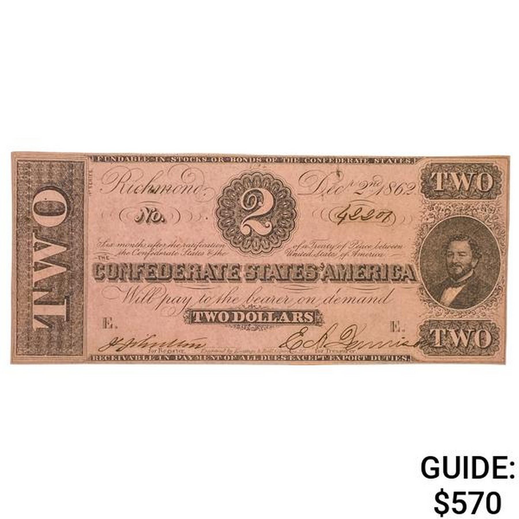 T-54 1862 $2 TWO DOLLARS JUDAH BENJAMIN CSA CONFEDERATE STATES OF AMERICA CURRENCY NOTE UNCIRCULATED