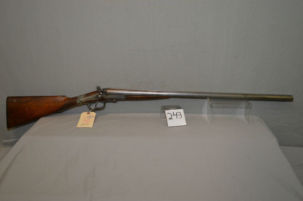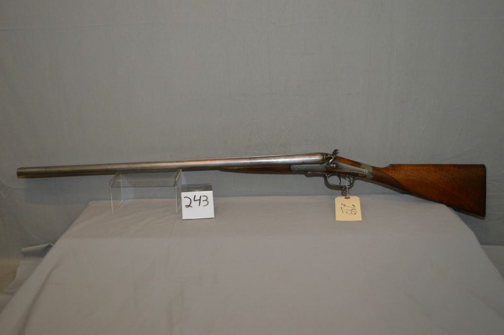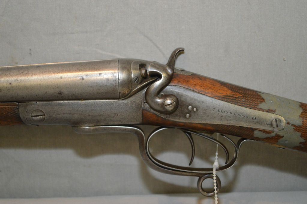 T.Bland & Sons ( 106 Strand London ) Model The Keeper's Gun .12 Ga Side By Side Hammer Shotgun w/ 30" bbls [ back action style locks, Jones style under lever, straight checkered English style stock, broken thru wrist and repaired lower tang is braised, w/ Clabroughs Duck & Quayle butt plate, ( 153) ] Ser # 11923