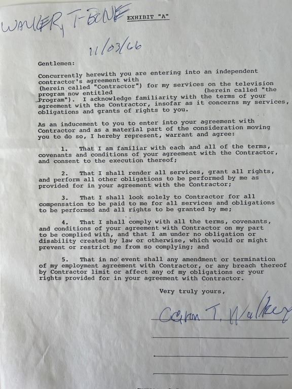 T-Bone Walker signed contract. 9x12 inches. DB671