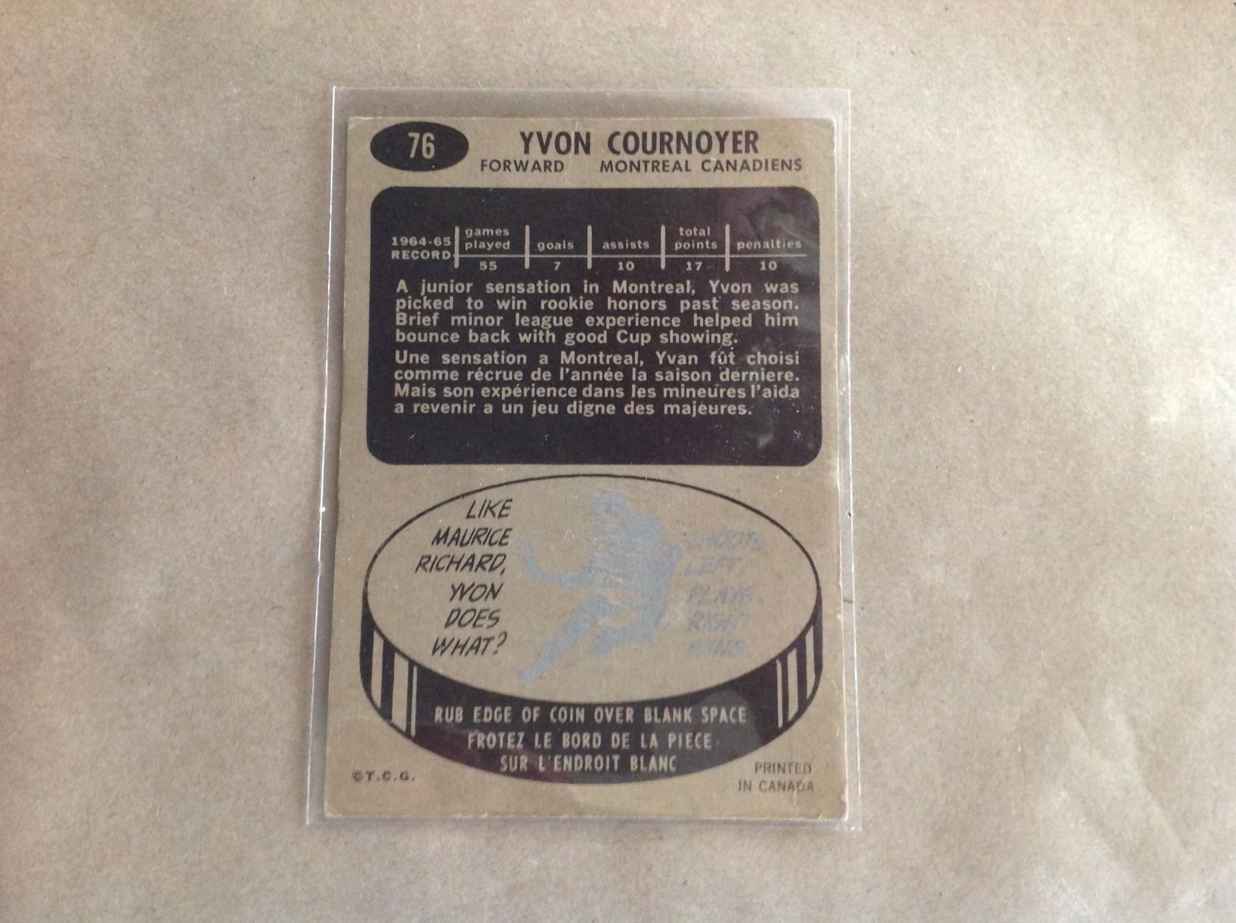 1964-65 Montreal Canadiens Forward - Yvon Cournoyer Hockey Card