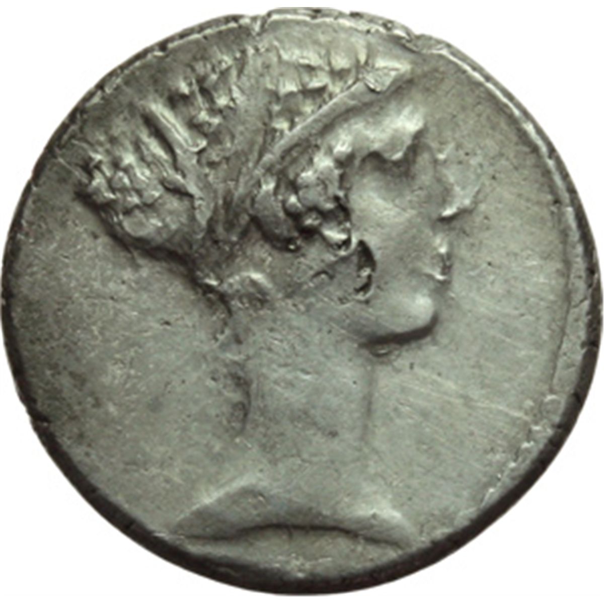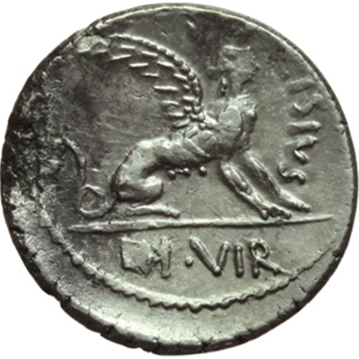 Repubblica Romana. T. Carisius. Denario, 46 a.C. D/ Testa della Sibilla di Aphrodisia a destra. R/ T. CARISIVS III VIR. Sfinge assisa a destra. Cr.464/1. B.10. AG. g. 3.74 mm. 17.00 R. BB.