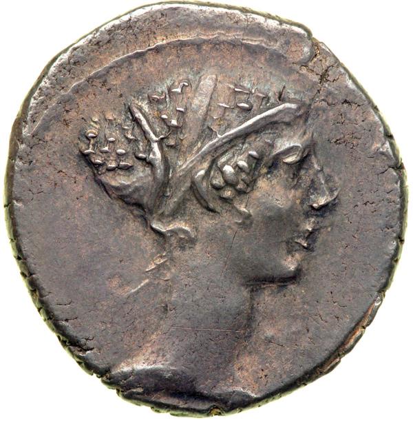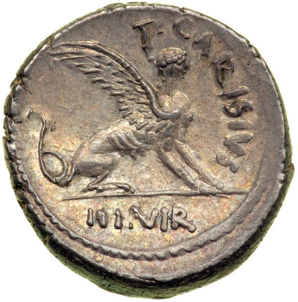 T. Carisius, moneyer. AR Denarius minted at Rome, c. 46