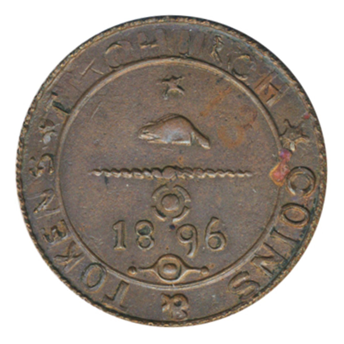 T. Church Token. Bow. 10-43. Copper. Reeded edge. Thin. 7.2 gms. UNC. Trace of luster.