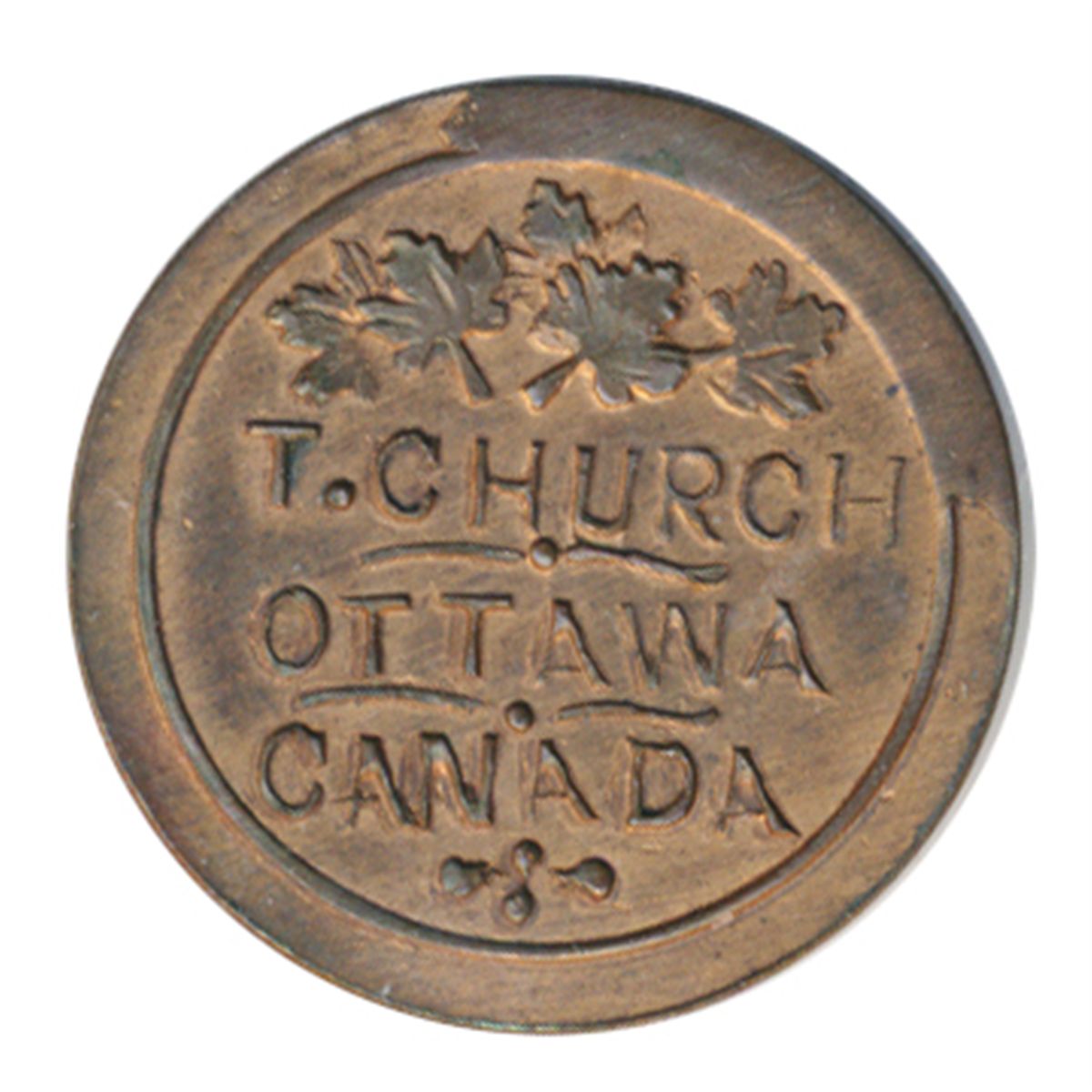 T. Church Token. Bow. 13-24. Copper. Plain edge. Thin. 7.8 gms. UNC. 60% luster.