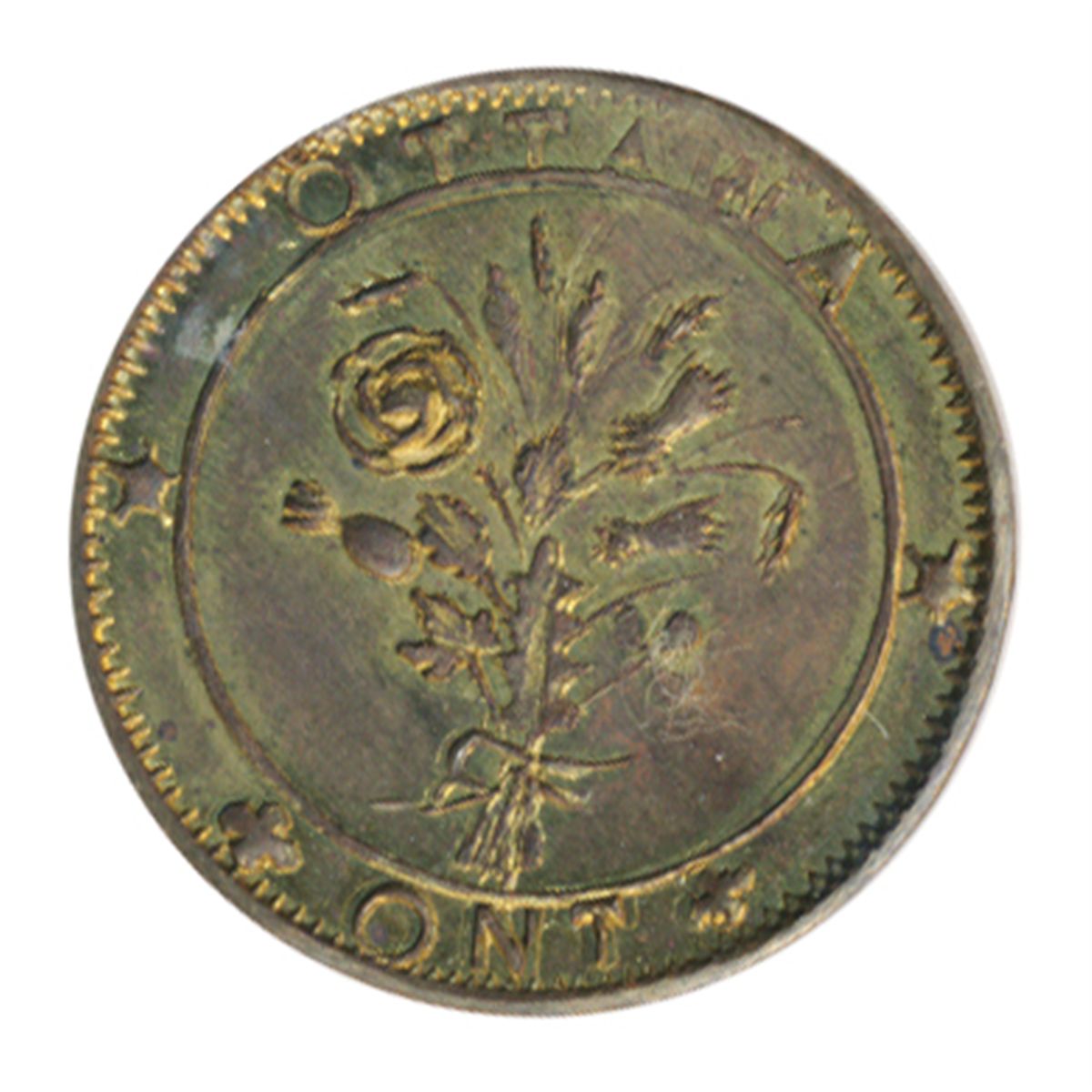 T. Church Token. Bow. 41-43. Brass. Plain edge. Thin. 8.1 gms. UNC. 50% luster.