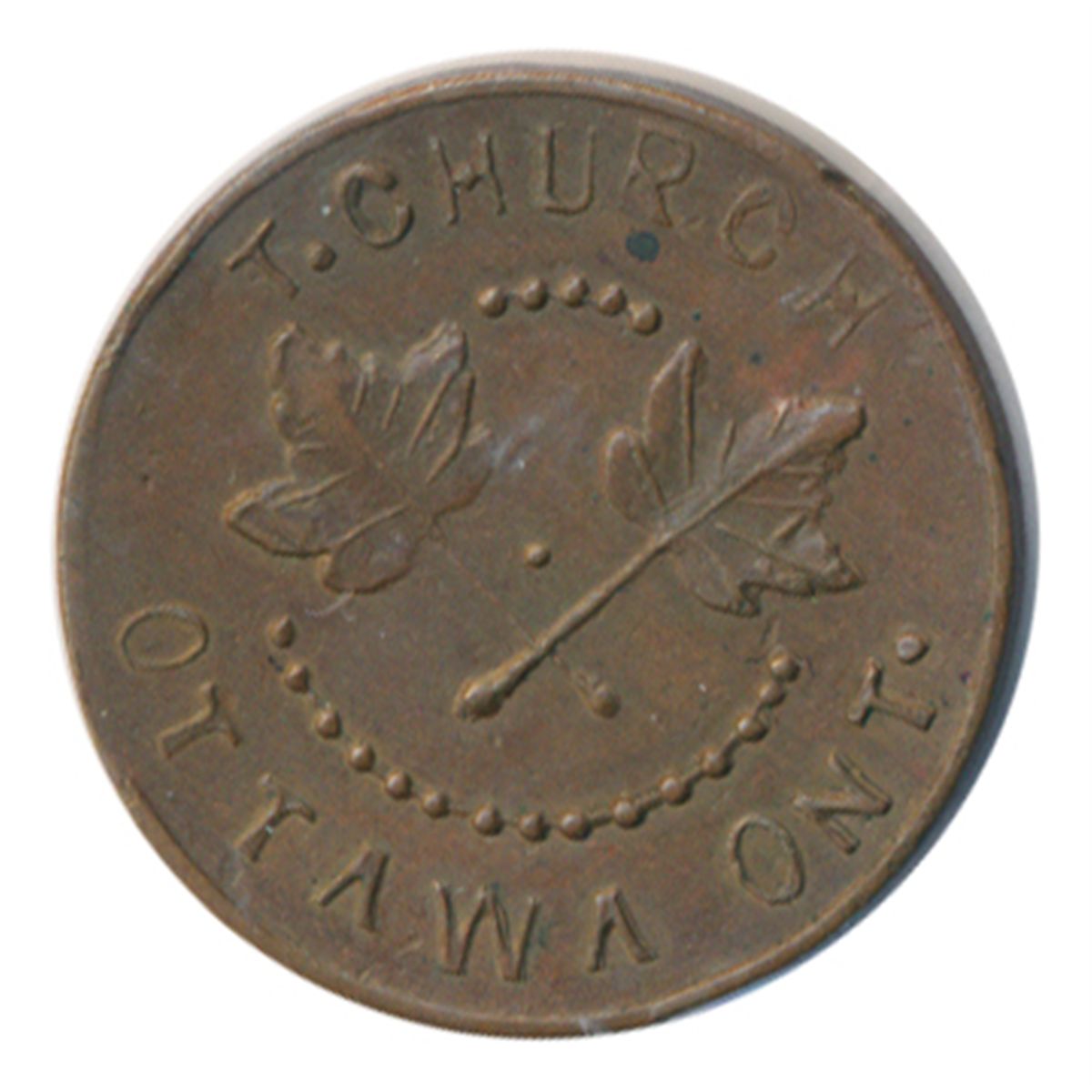 T. Church Token. Bow. 5-34. Copper. Plain edge. Thin. 7.1 gms. UNC. Lustrous Brown. Eight examples struck.
