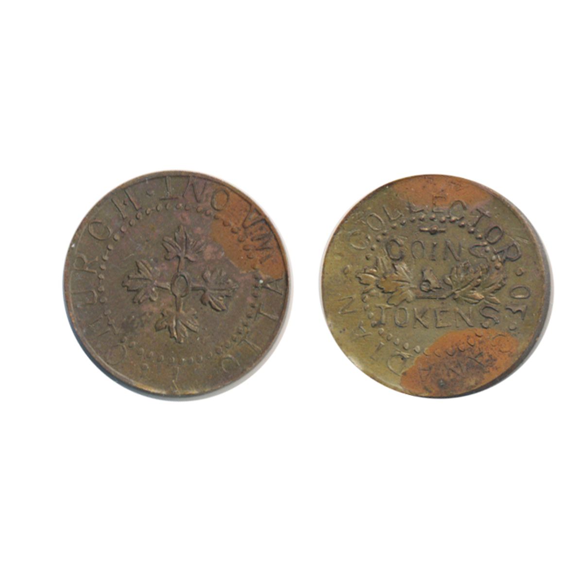 T. Church Token. Bow. 8-27. Copper. Plain edge. Medium Thick. 7.0 gms. UNC. 20% luster. Some heavy toning areas.