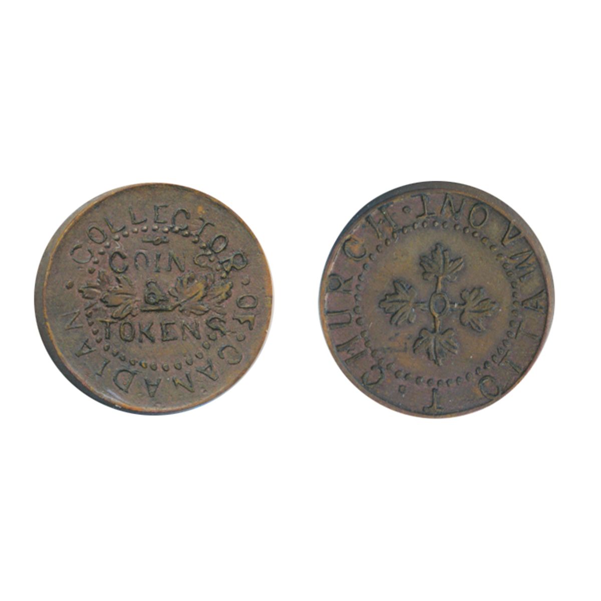 T. Church Token. Bow. 8-27. Copper. Plain edge. Very Thick. 13.3 gms. UNC. 10% luster. The thickest T. Church in the collection.