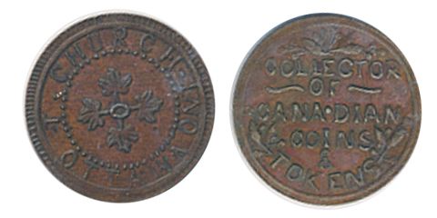 MOORE’S is pleased to offer an Uncirculated Magdalen Island token, other choice Pre-Confederation, Post-Confederation Tokens, rare Hudson’s Bay tokens, numismatic tokens, communion tokens and T. Church tokens. All are conservatively graded, many by ICCS.