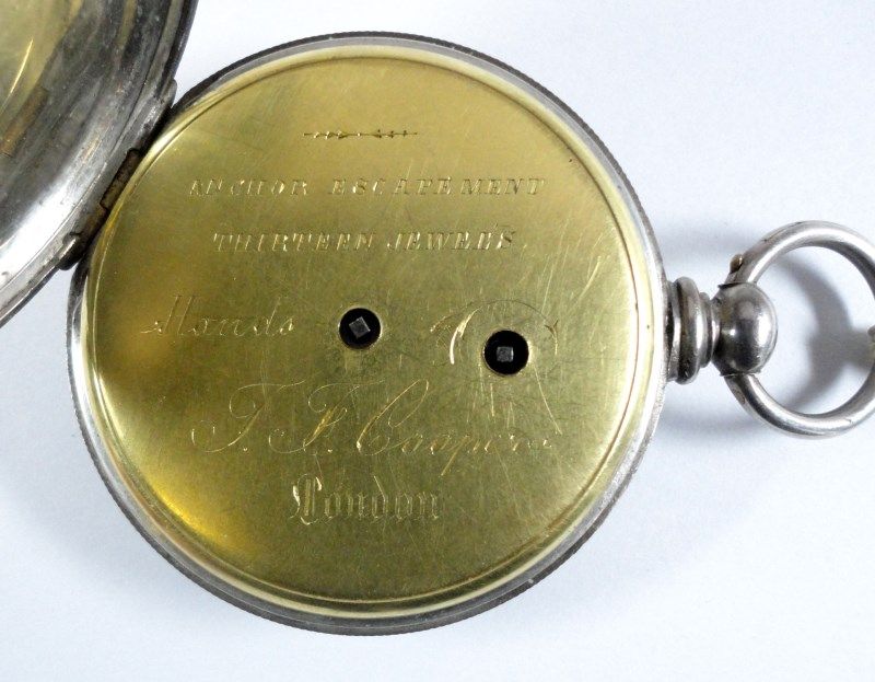 T.F. COOPER LONDON KEY WIND POCKET WATCH, ARGENT SILVER, RUNS / WORKS