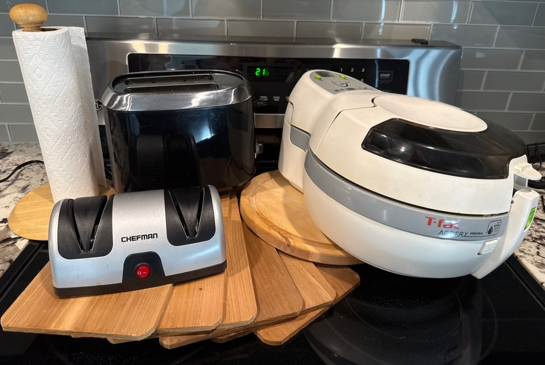 T-Fal Air Fryer, Chefman Knife Sharpener, Toaster, Paper Towel Holder & Cutting Boards