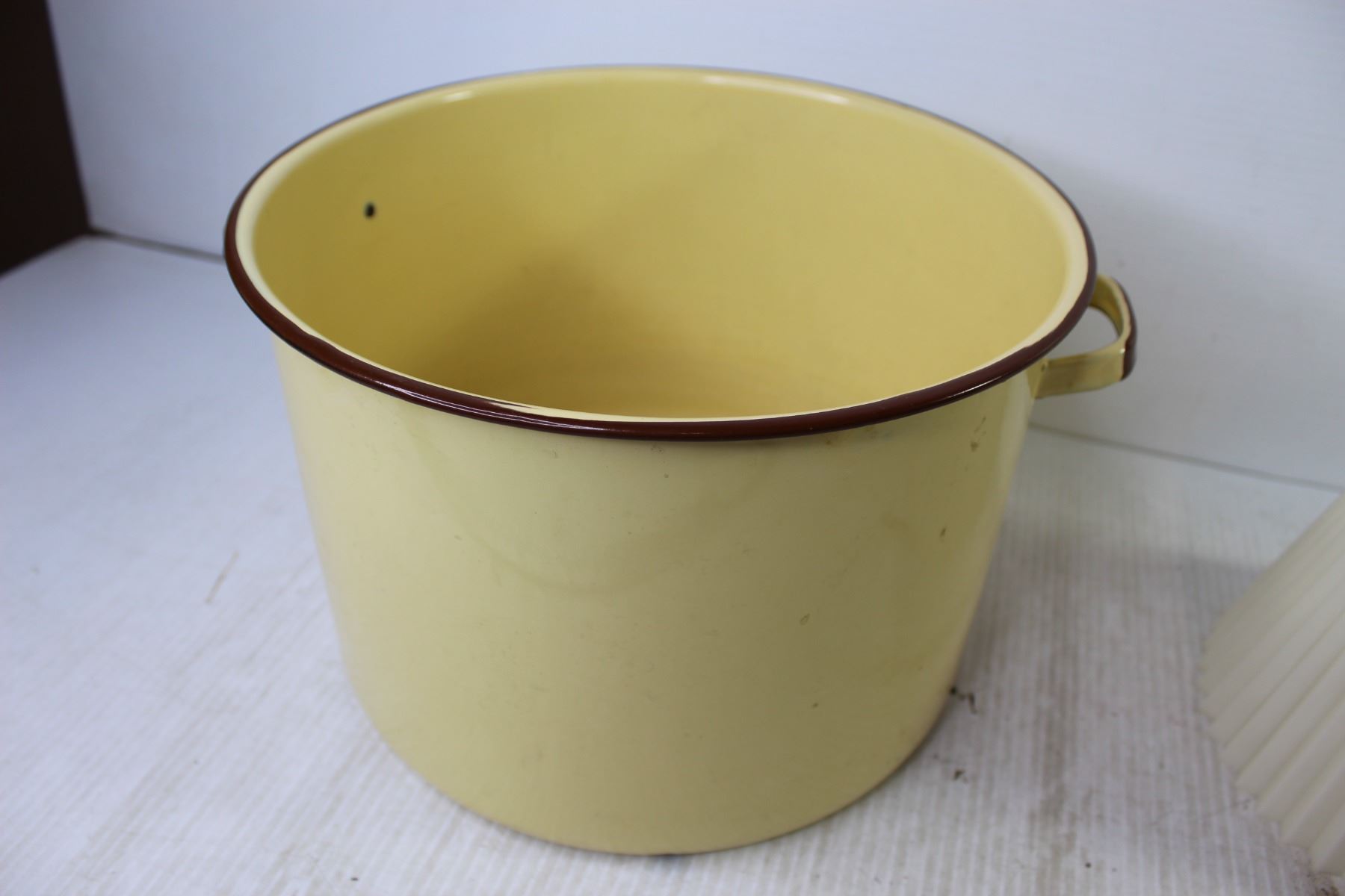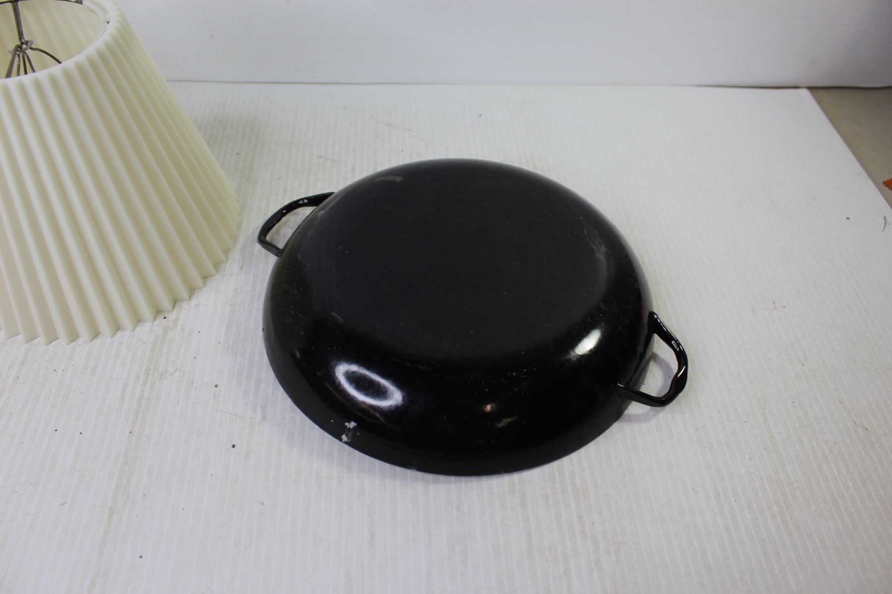T-Fal Frying Pan (NIB) - Plastic Lamp Shade -(2) Enamel Ware Pans
