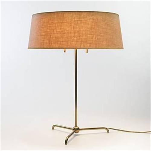 T.H. Robsjohn-Gibbings table lamp Widdicomb USA, c. 1955 brass, linen, enameled steel 15.5 dia x 20 h inches