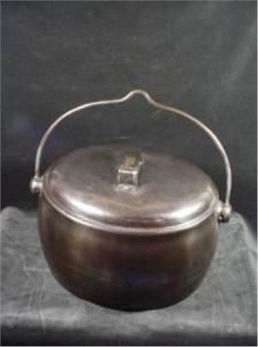 T HOLCROFT AND SONS 2 GALLON WOLVERHAMPTON COVERED NICKEL BEAN POT WITH LID AND HANDLE 7"X13".