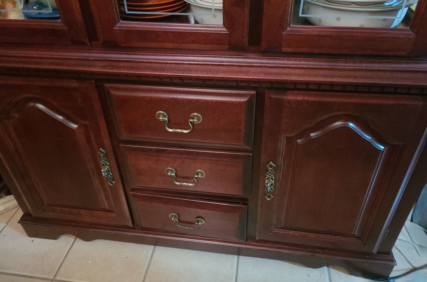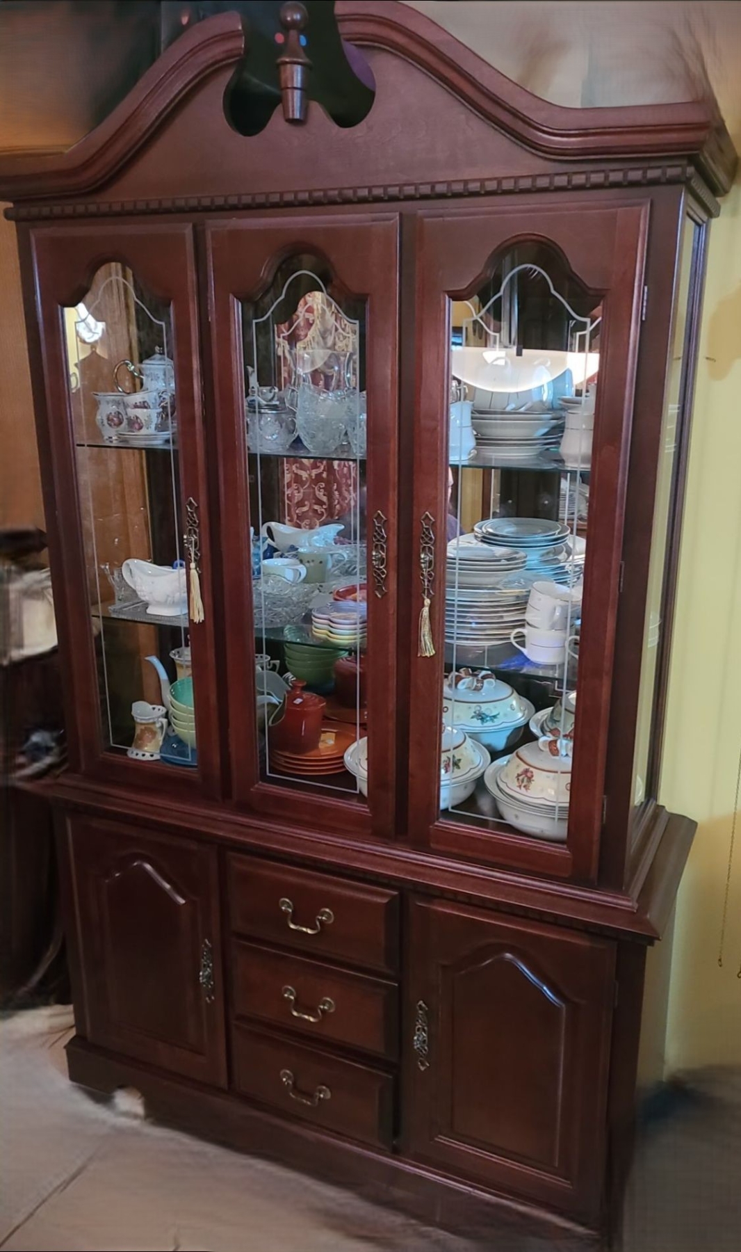 T & J China Cabinet with 2 Side Cupboards, 3 Drawers, Glass Shelves and Light 82 T, 51 L, 17 D