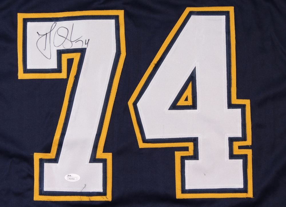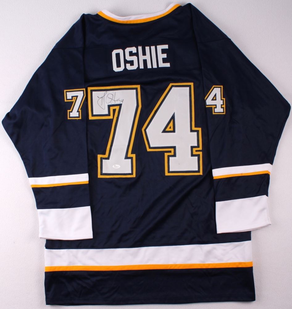 Custom on-ice style jersey. Everything sewn on, size XL. Hand-signed in black felt-tip pen by T.J. Oshie. The autograph includes an official James Spence Authentication (JSA) hologram and matching COA for authenticity purposes.